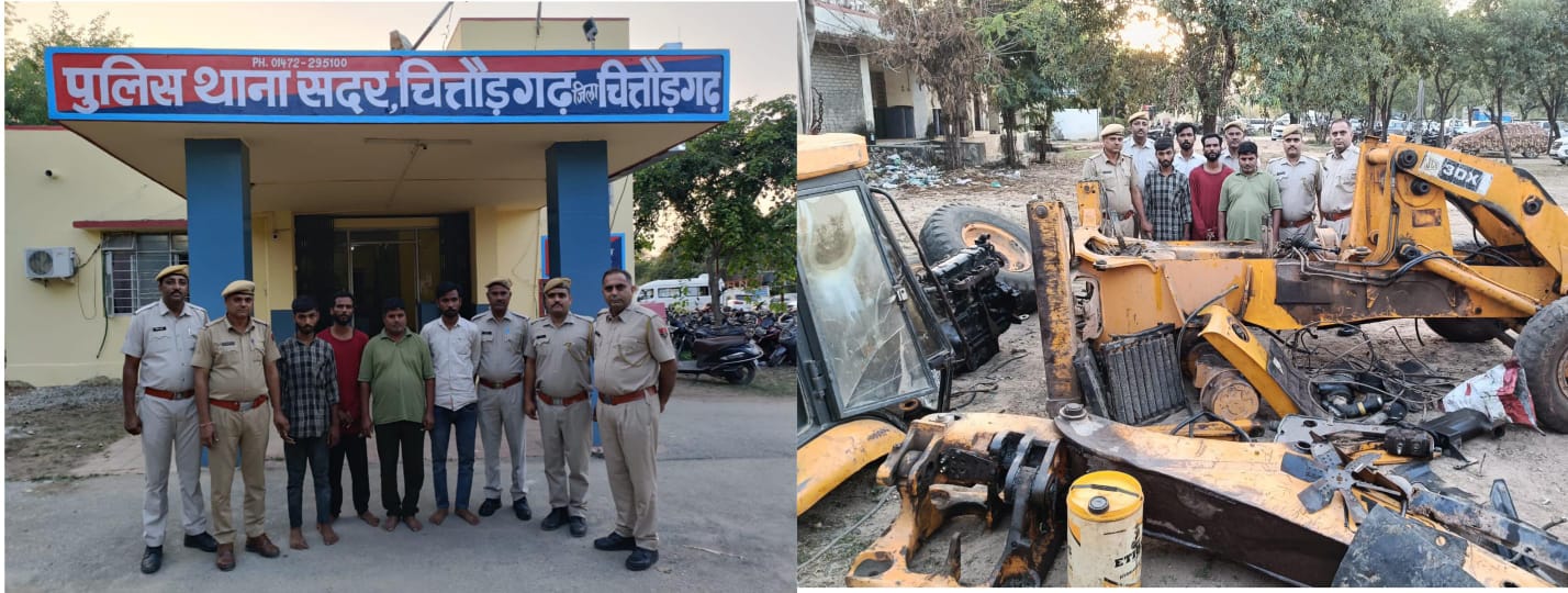 JCB चोरी की घटना का खुलासा, चार आरोपी गिरफ्तार, करीब 100 सीसीटीवी कैमरे देख कर एमपी के मंदसौर जिले से बरामद की....