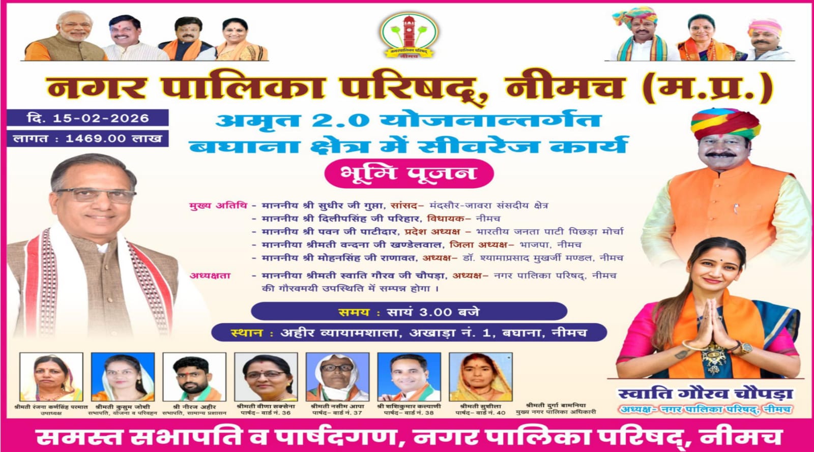 बघाना को मिलेगी सीवरेज की बड़ी सौगात, सांसद, विधायक व नपाध्यक्ष के हाथों कल होगा 14.69 करोड़ रुपये की योजना का भूमि पूजन...