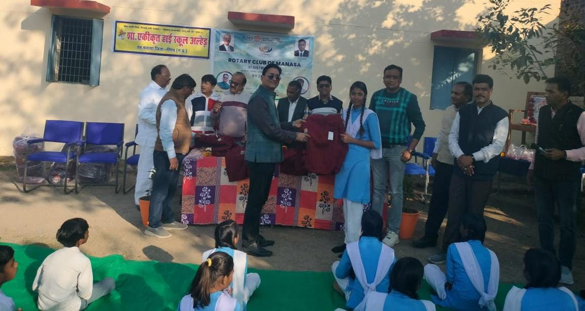 हाई स्कूल अल्हेड़ के छात्रों को रोटरी क्लब मनासा द्वारा 115 स्वेटर वितरण..