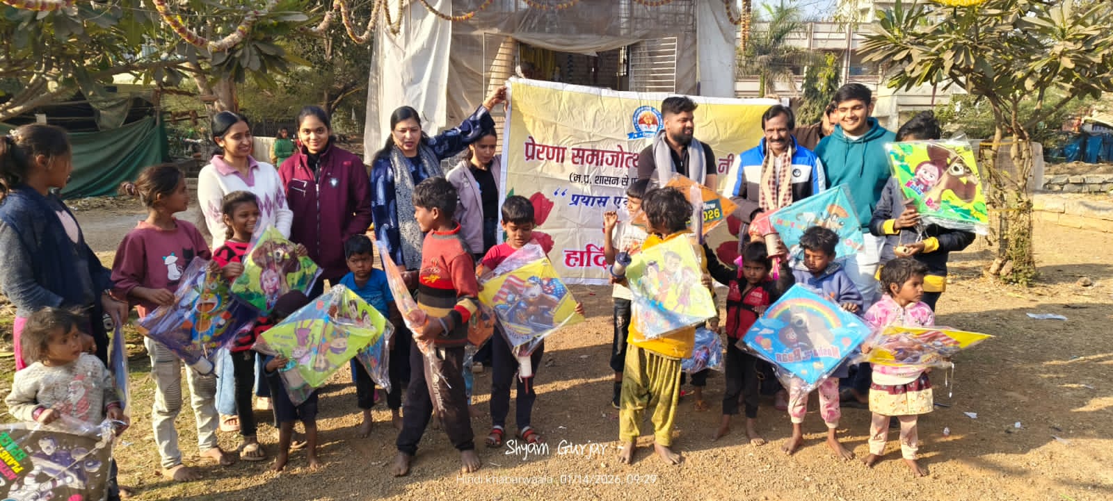 बस्ती के बच्चों की शानदार मकर संक्रांति, प्रेरणा समाजोत्थान समिति ने बांटी रंगबिरंगी पतंगें...