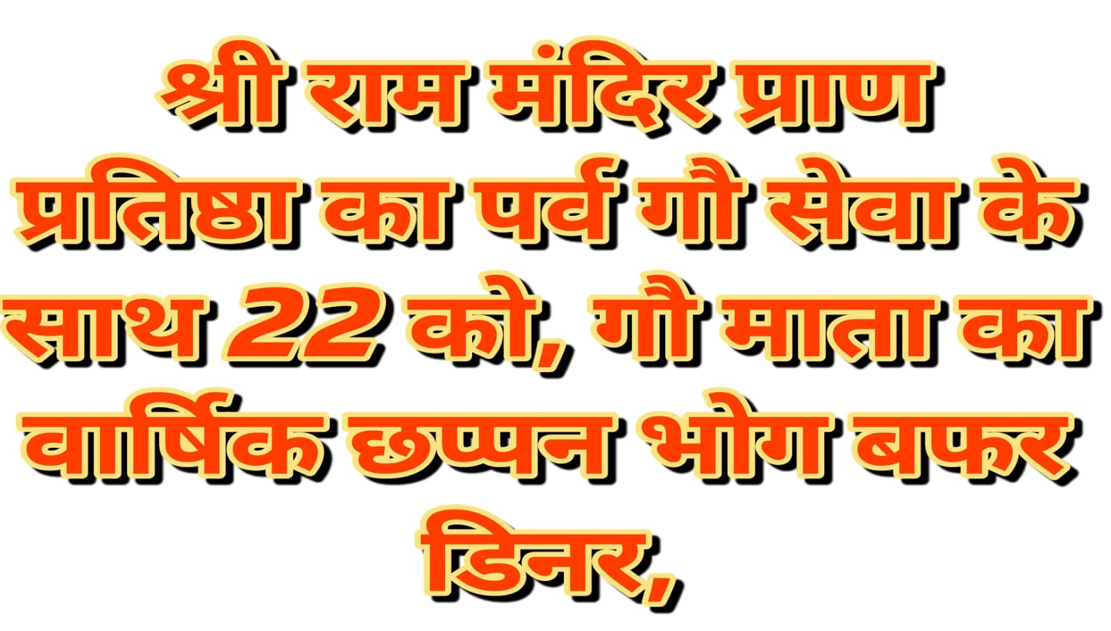 श्री राम मंदिर प्राण प्रतिष्ठा का पर्व गौ सेवा के साथ 22को , गौ माता का वार्षिक छप्पन भोग बफर डिनर...