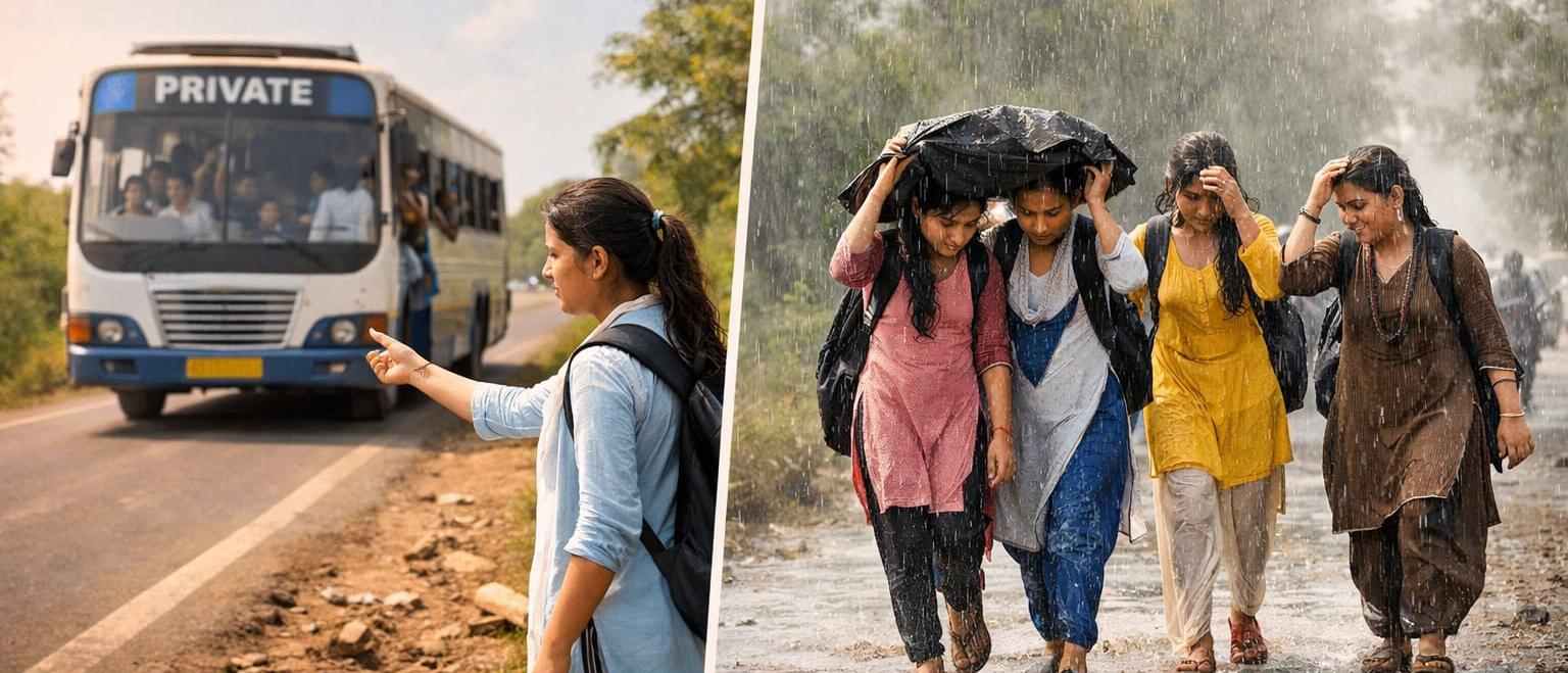 प्राइवेट बस संचालकों की मनमानी, छात्राओं को नहीं मिल रही जगह, रोजाना 2 किमी पैदल सफर को मजबूर...