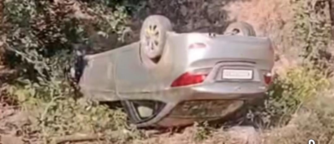 बाइक सवार को बचाने में कार अनियंत्रित होकर खाई में गिरी, कोई जनहानि नही....