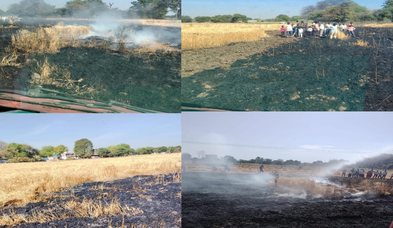 रानपुर में शॉर्ट सर्किट से गेहूं के खेत में लगी आग, एक बीघा फसल जलकर राख....