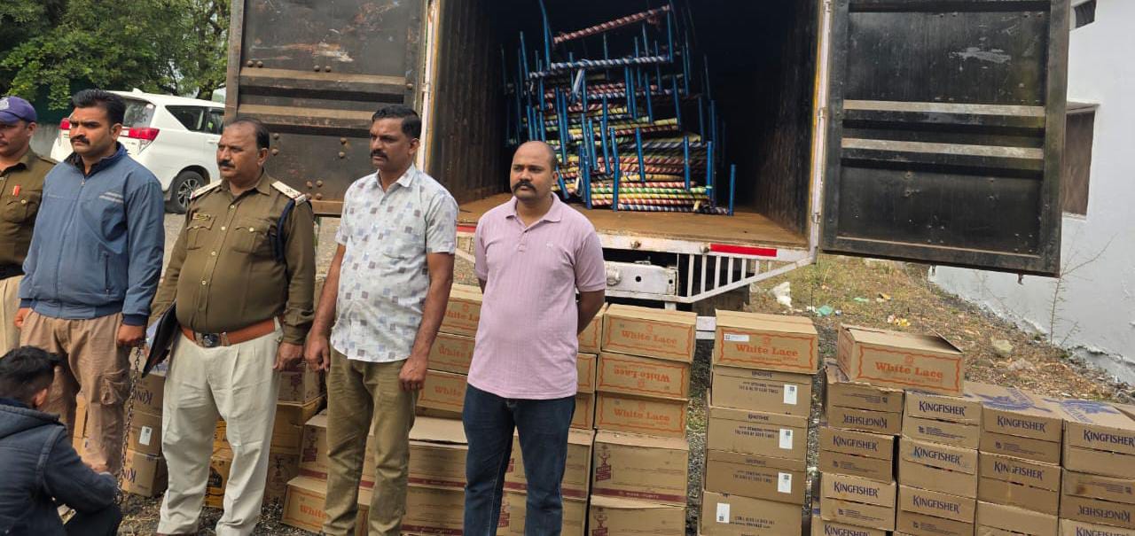लोहे के पलंग की फर्जी बिल्टी की आड में ट्रक कन्टेनर में ले जाई जा रही 20 लाख रुपये की अवैध अंग्रेजी ब्रांडेड शराब पकडी गई....