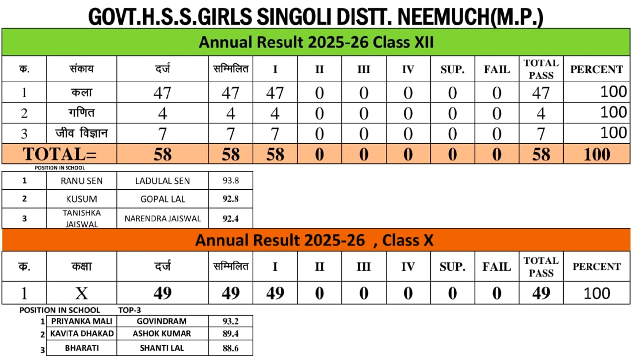 शासकीय हाई स्कूल उमर का शत-प्रतिशत परीक्षा परिणाम, छात्राओं ने मारी बाजी...