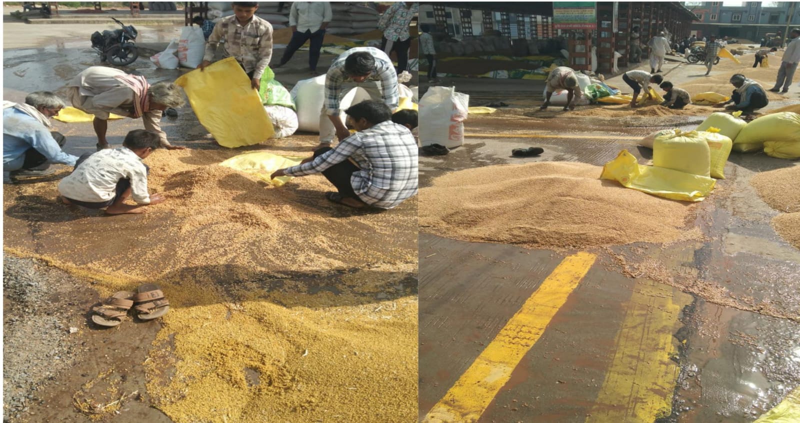 बिना बारिश भीगी फसल, जीरन मंडी के पास पाइपलाइन फूटने से किसानों को भारी नुकसान....