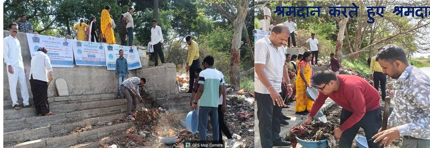 जल गंगा संवर्धन अभियान नीलकंठ महादेव बोरखेड़ी नदी के घाट की साफ-सफाई की...