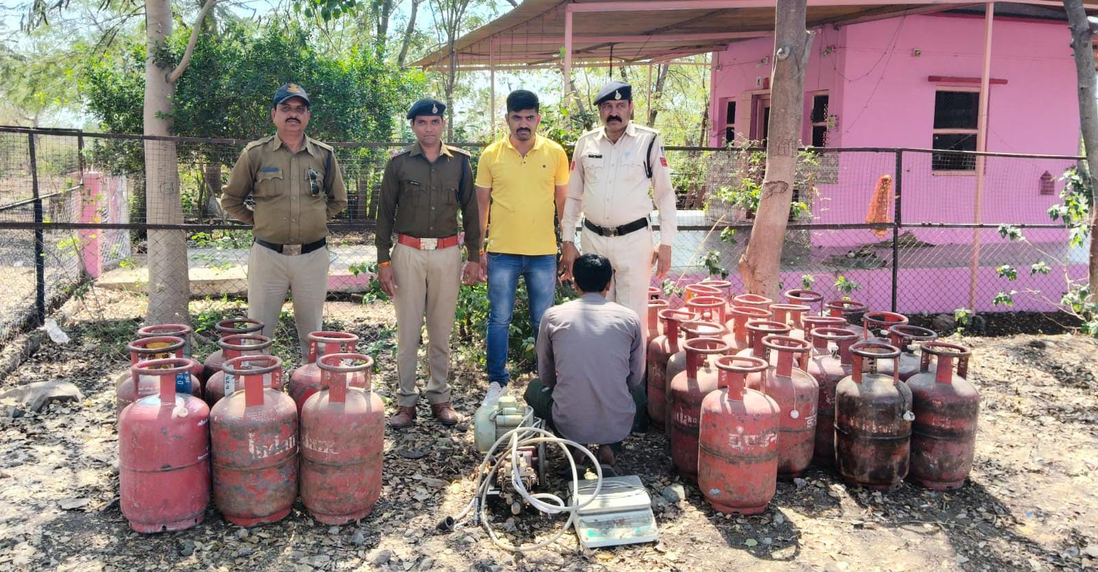 अवैध रुप से खुले मे चल रहे गैस रिफिलींग करने वाल व्यक्ति के विरुध्द कार्यवाही आरोपी के कब्जे से जप्त की गई गैंस की टंकीया एवं अन्य सामग्री...
