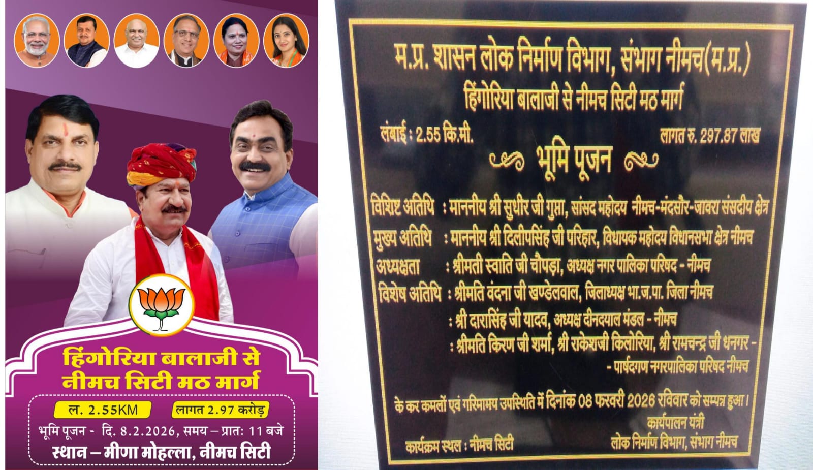 हिंगोरिया बालाजी से नीमच सिटी मठ मार्ग का भूमिपूजन कल, सिटी वासियों को मिलेगी बडी सौगात, मिलेगा वैकल्पिक मार्ग, 297.87 लाख की लागत से होगा 2.55 किमी मार्ग का निर्माण...