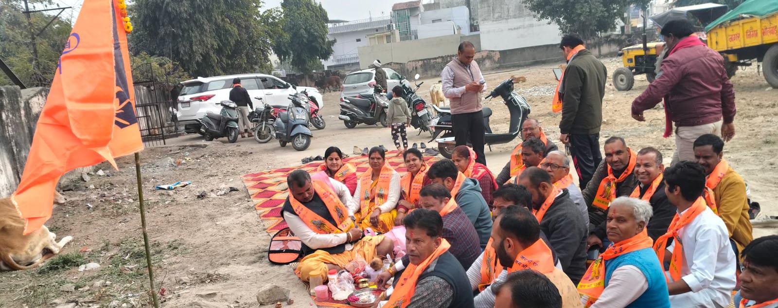 राधा कृष्ण बस्ती द्वारा विराट हिंदू सम्मेलन की शुरुआत भूमि पूजन से..