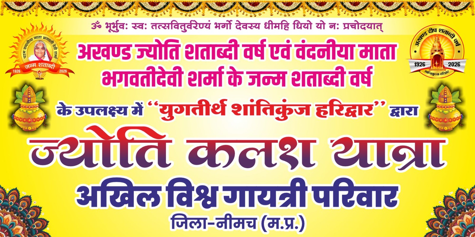 गायत्री परिवार द्वारा नीमच जिले में ज्योति कलश यात्रा का आयोजन 1 जनवरी से....