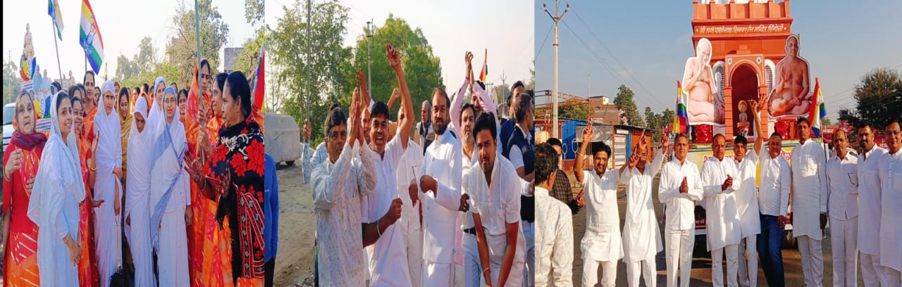माताजी ससघ के सानिध्य में ऐतिहासिक तीन दिवसीय पदयात्रा का हुआ शुभारंभ, पदयात्रा के दोरान जगह जगह प्रभावना के रूप में लड्डु वितरण किए गए...