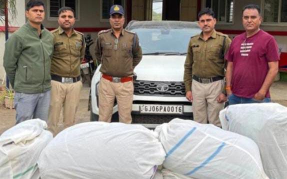 रतलाम पुलिस की बड़ी कार्रवाई, टाटा हैरियर से 140 किलो डोडा चूरा जब्त, तस्कर फरार....