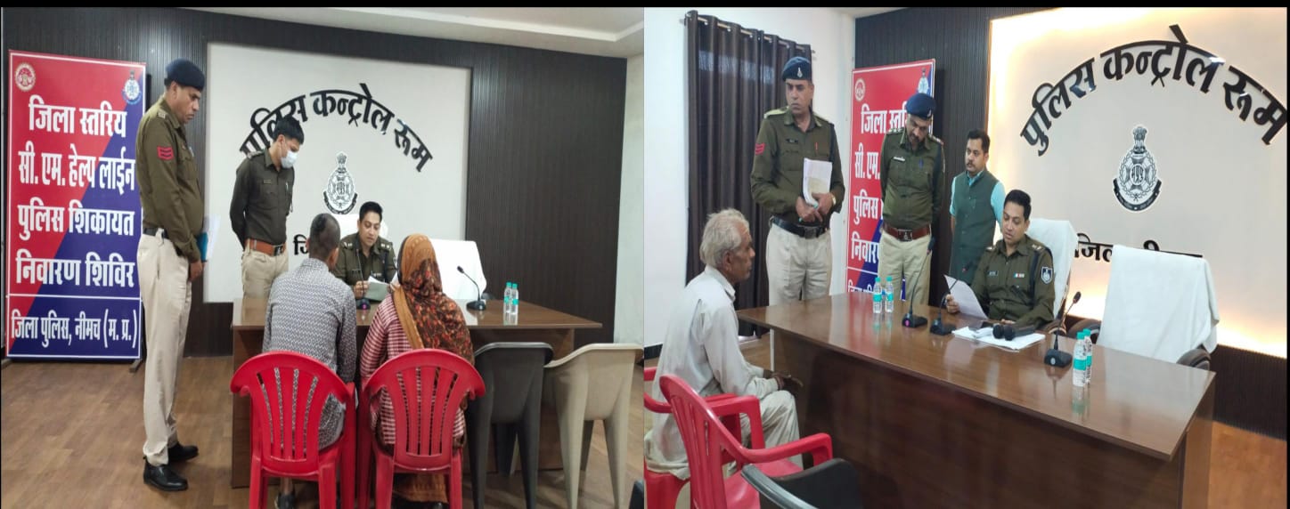 नीमच में जिला स्तरीय जनसुनवाई एवं सीएम हेल्पलाइन शिकायत निवारण शिविर आयोजित, एसपी अंकित जायसवाल ने 12 शिकायतों का किया संतोषजनक निराकरण, 26 आवेदकों की शिकायतों के निराकरण हेतु संबंधित अधिकारियों को दिये निर्देश....